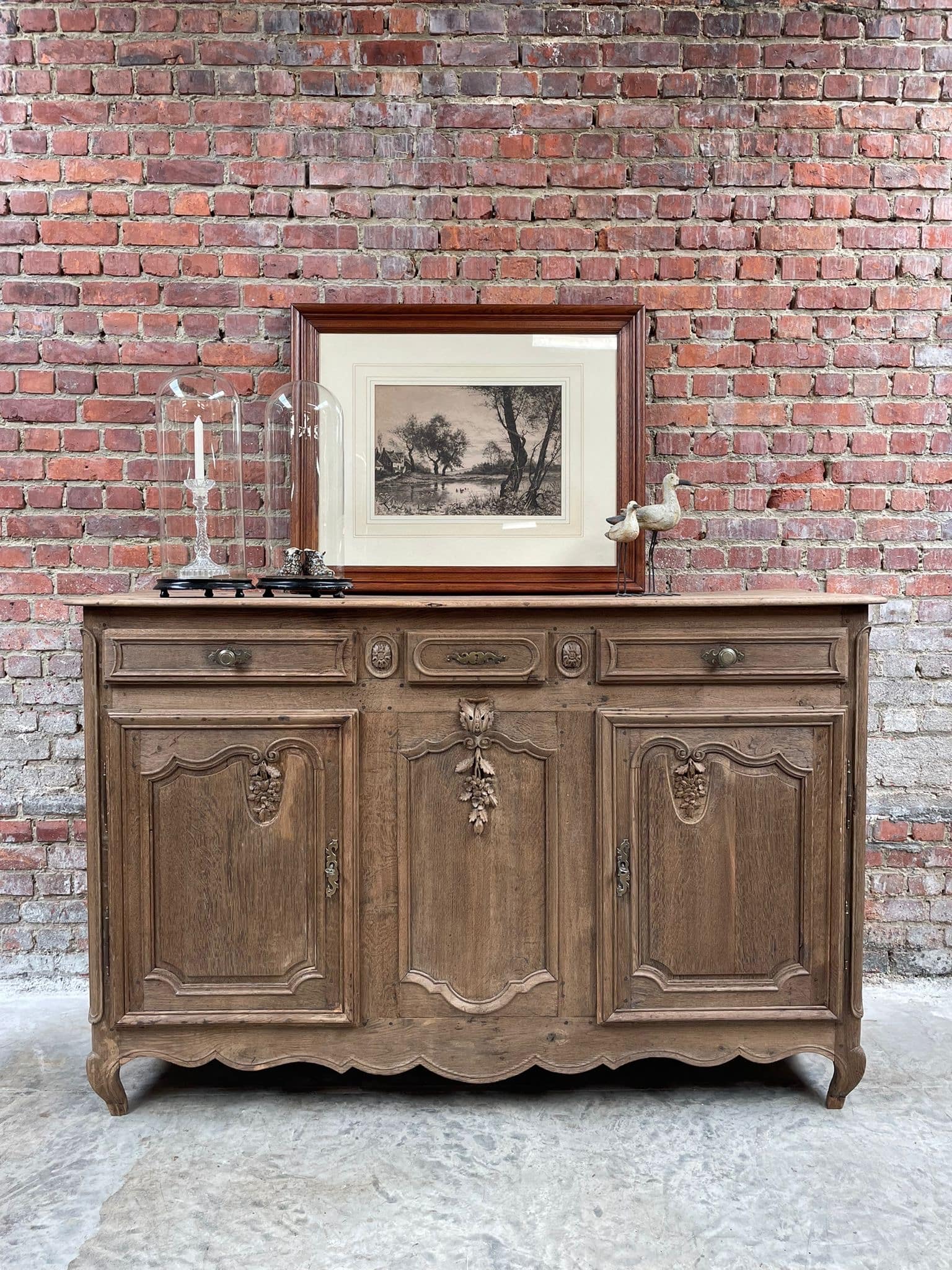 Massief eiken landelijke dressoir / buffetkast met houtsnijwerk