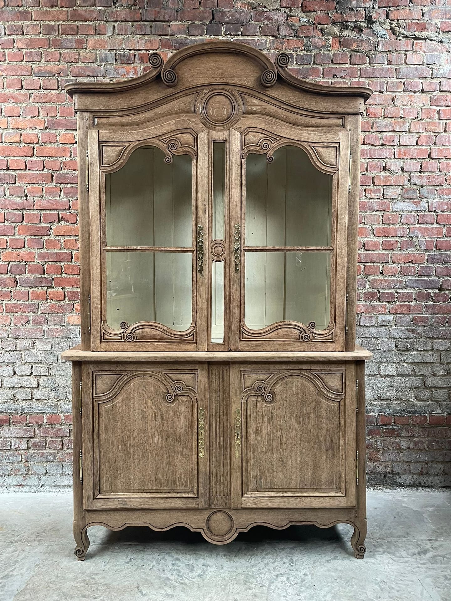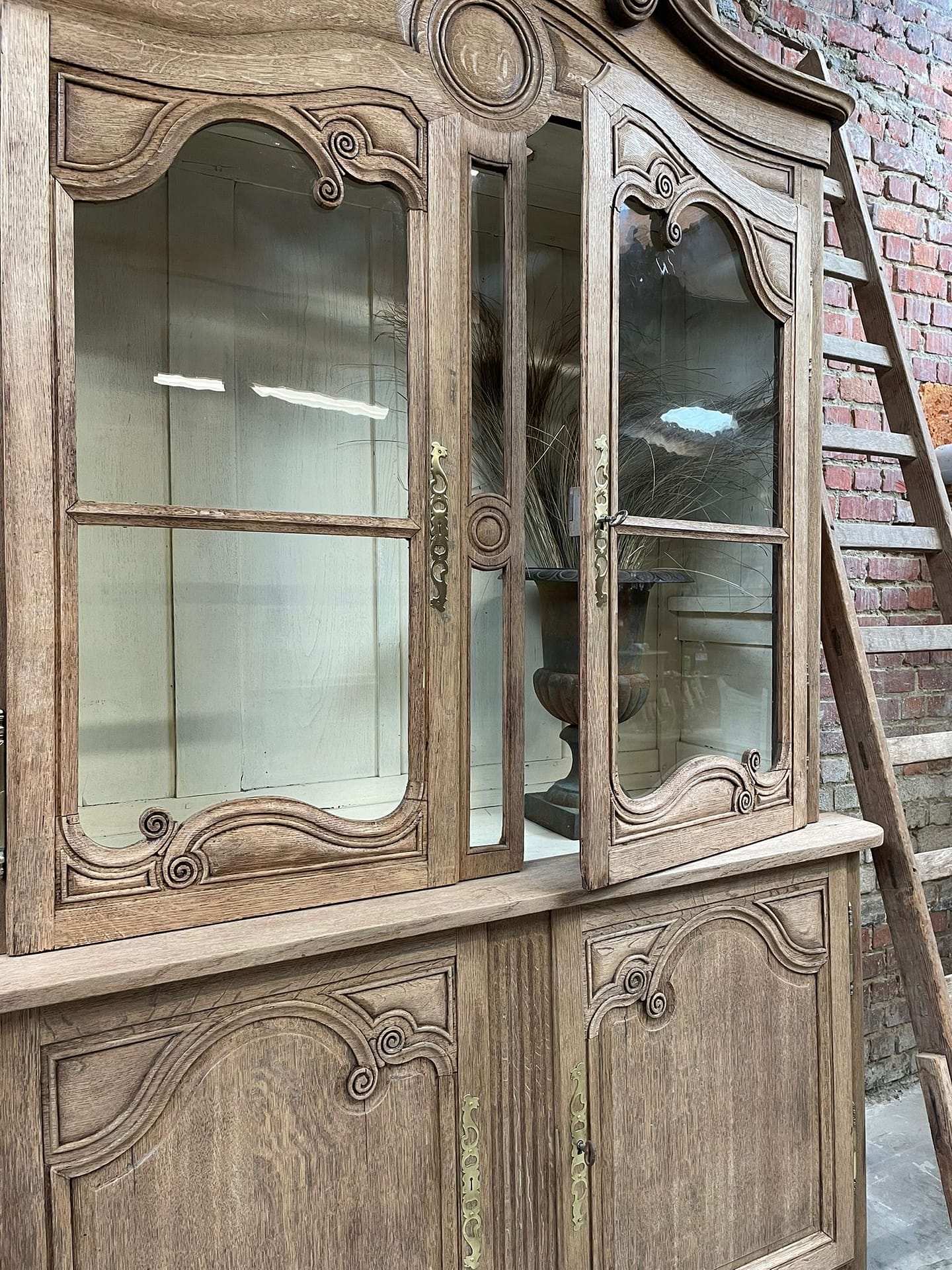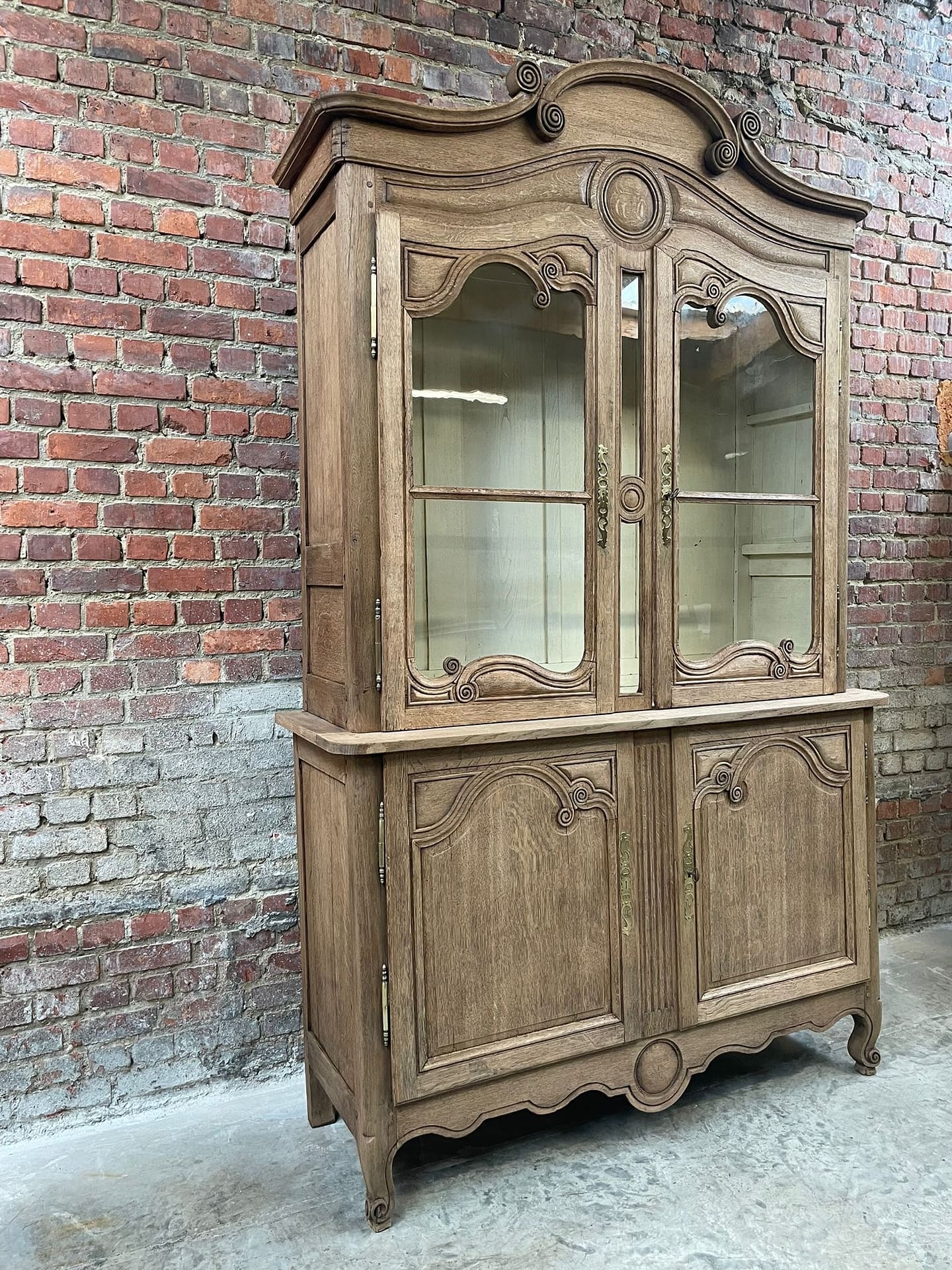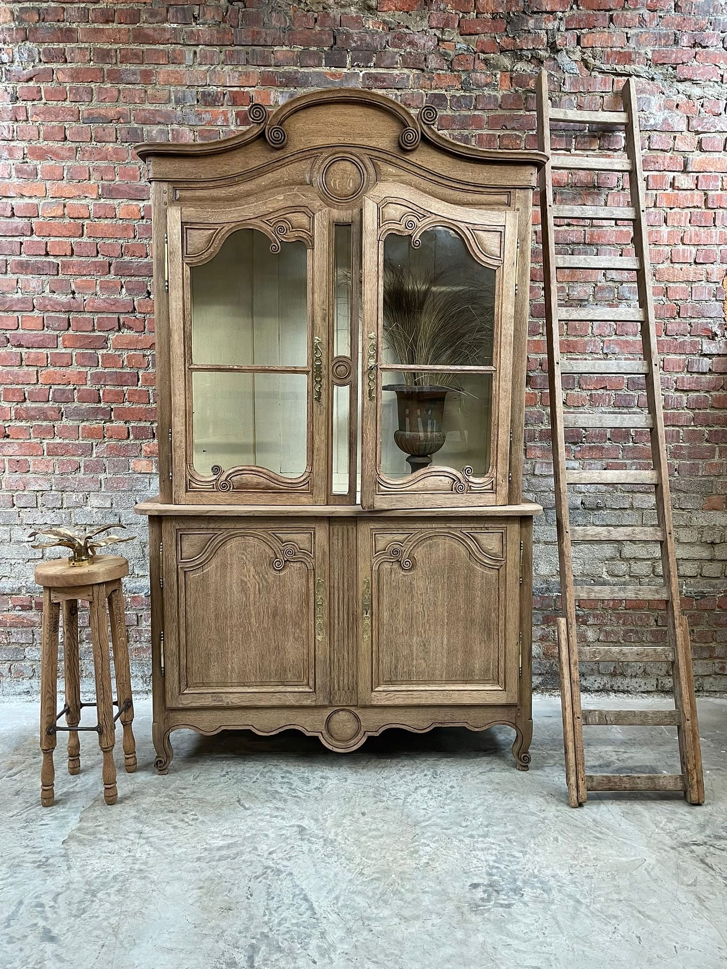 Franse buffetkast uit gebleekte eik met vitrinedeuren