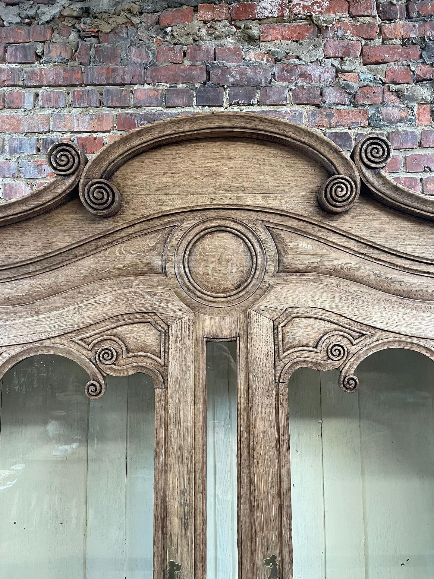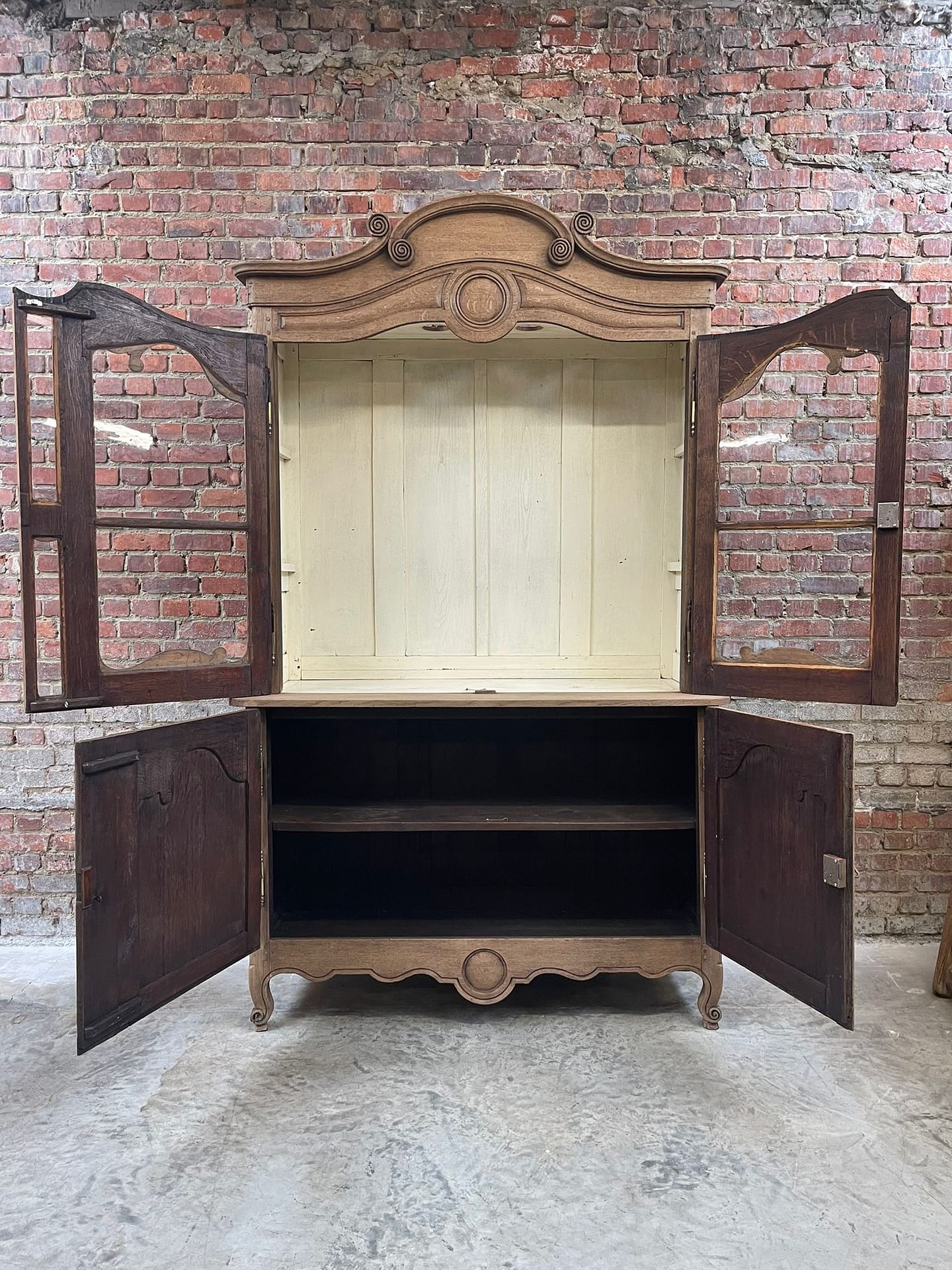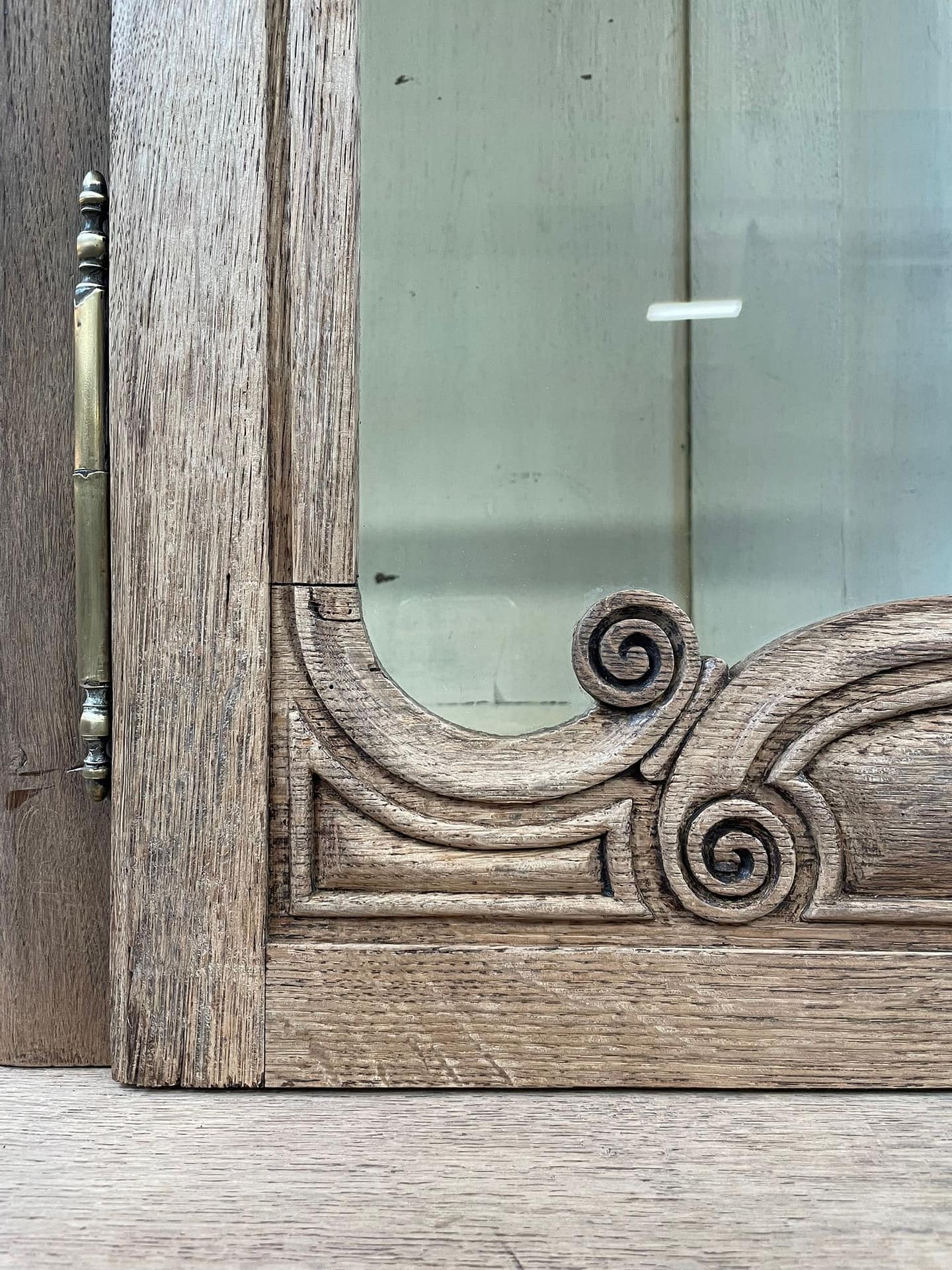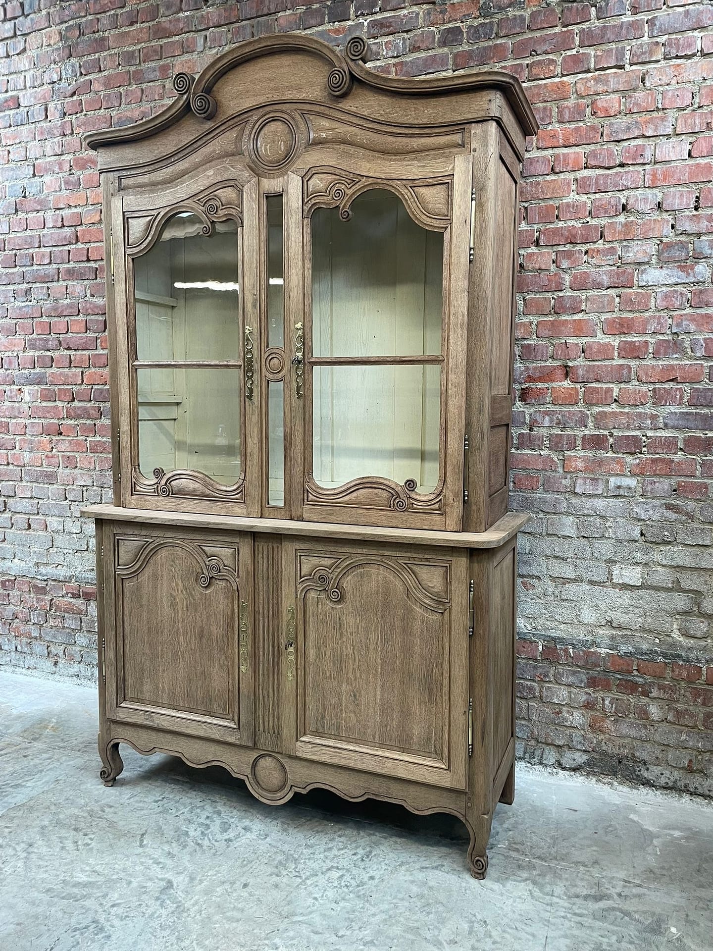 Franse buffetkast uit gebleekte eik met vitrinedeuren