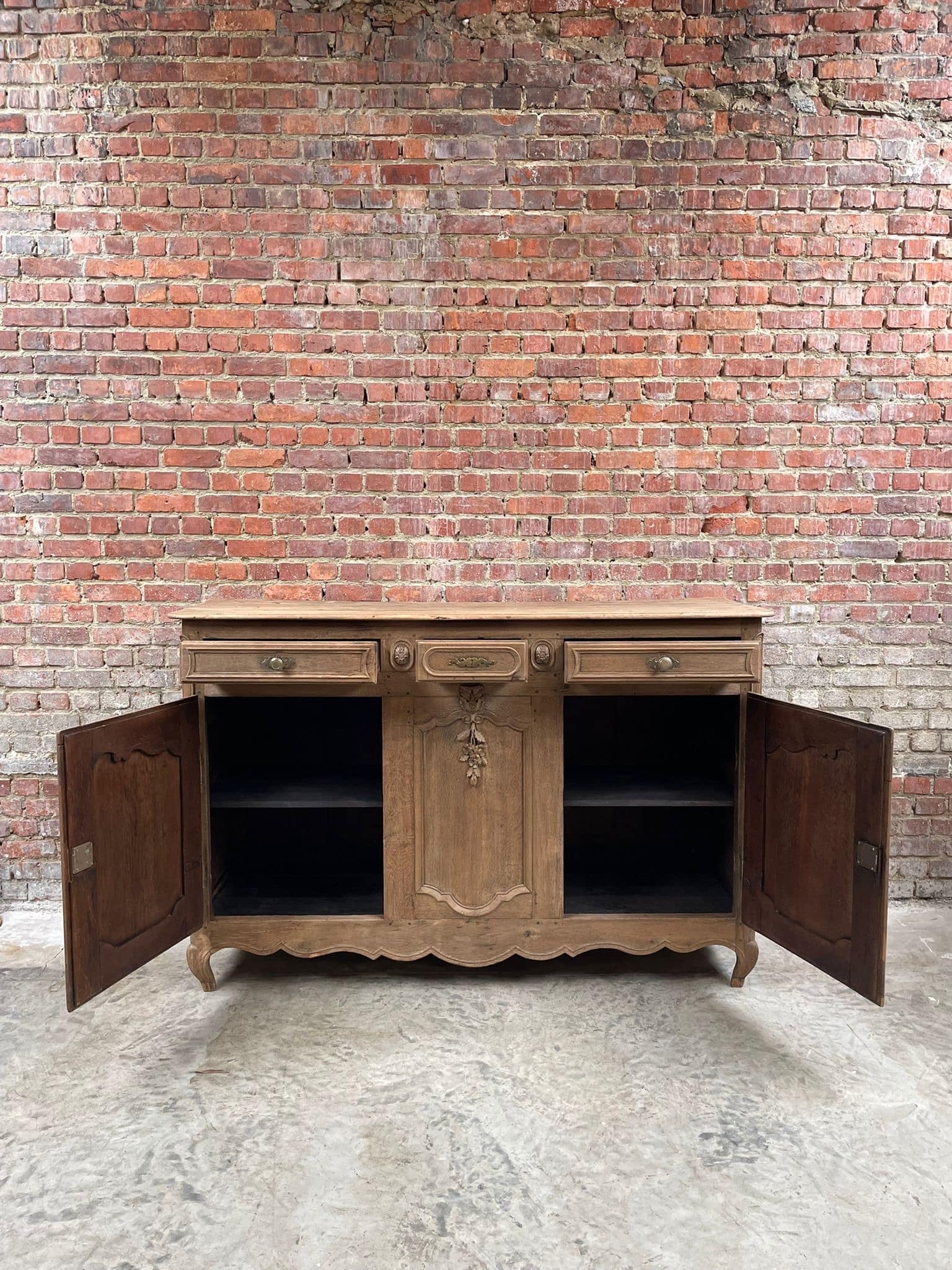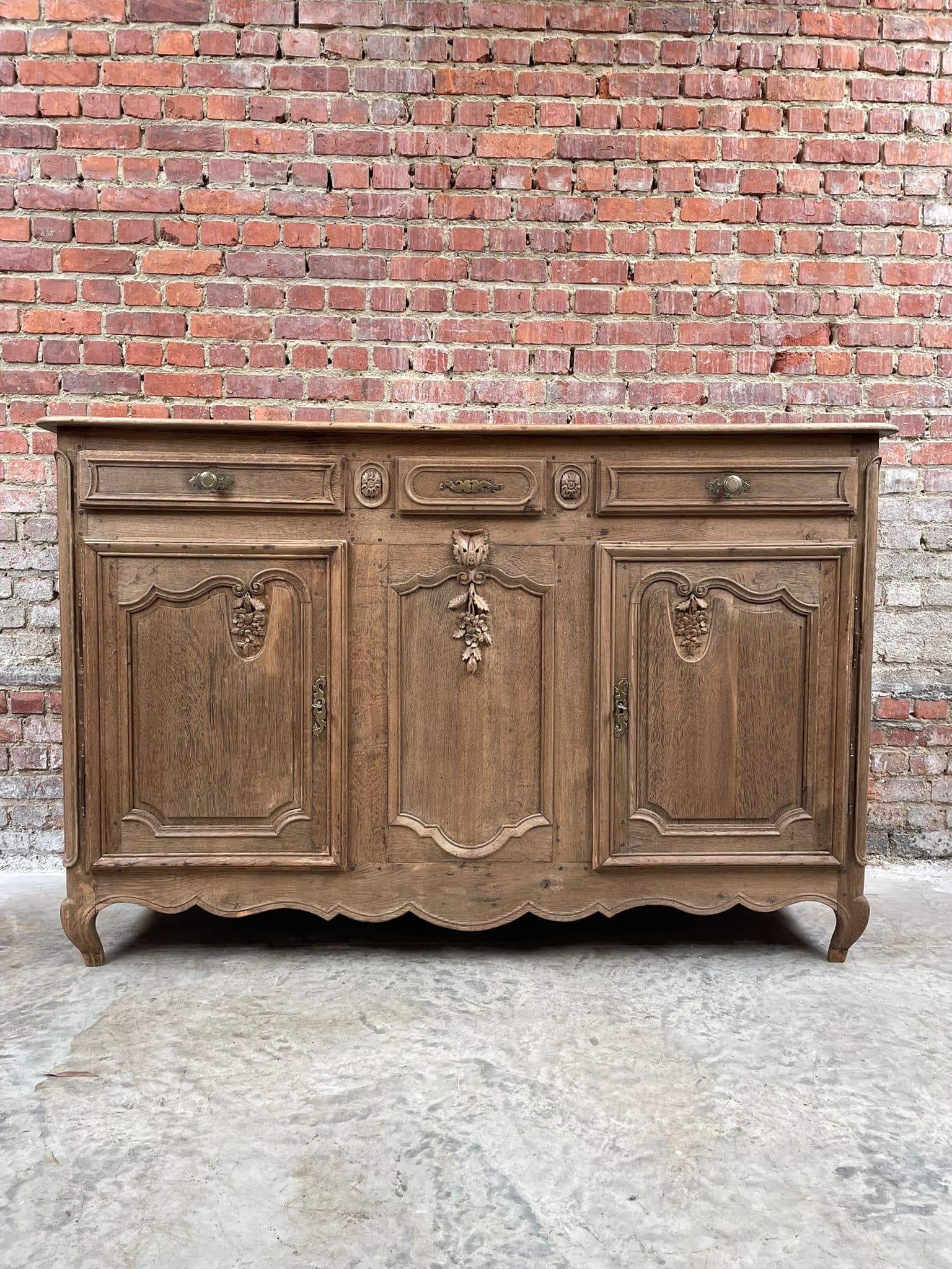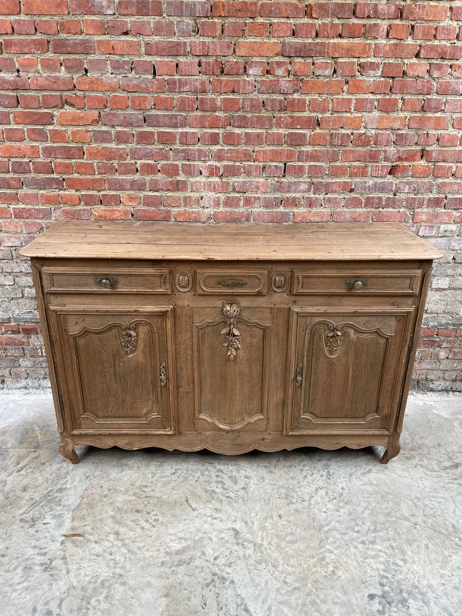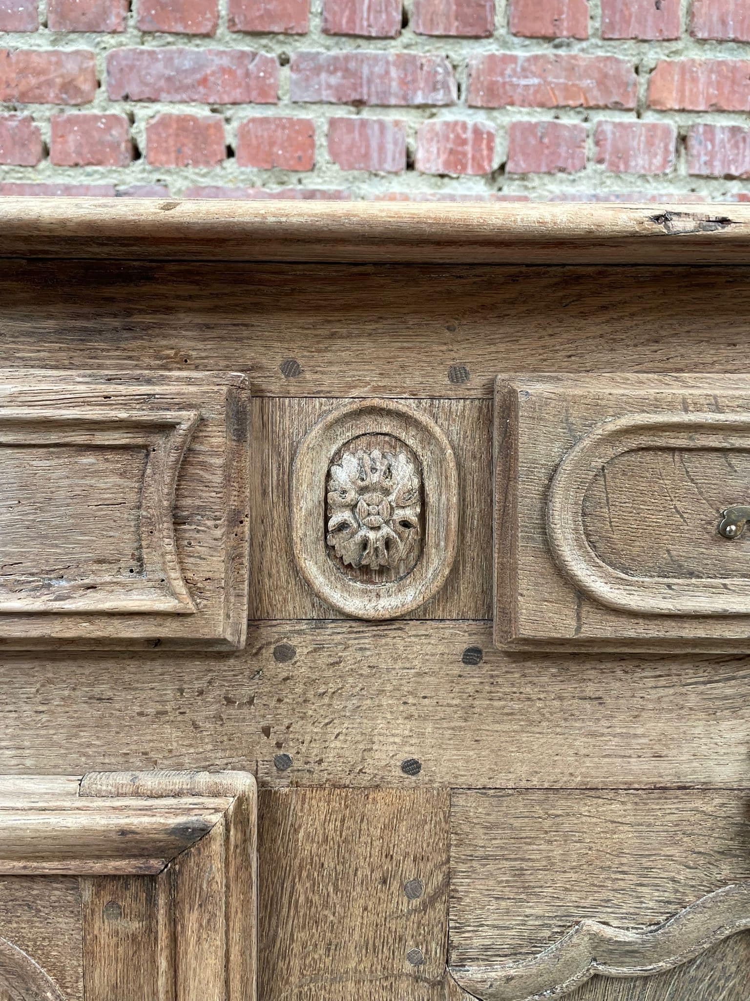 Prachtig massief eiken dressoir in landelijke stijl met verfijnd houtsnijwerk en originele details. Ideaal als buffetkast, tv-meubel of opbergkast in een klassiek, landelijk of brocante interieur. Veel opbergruimte dankzij meerdere deuren en lades. Stevig en tijdloos meubel met karakter.