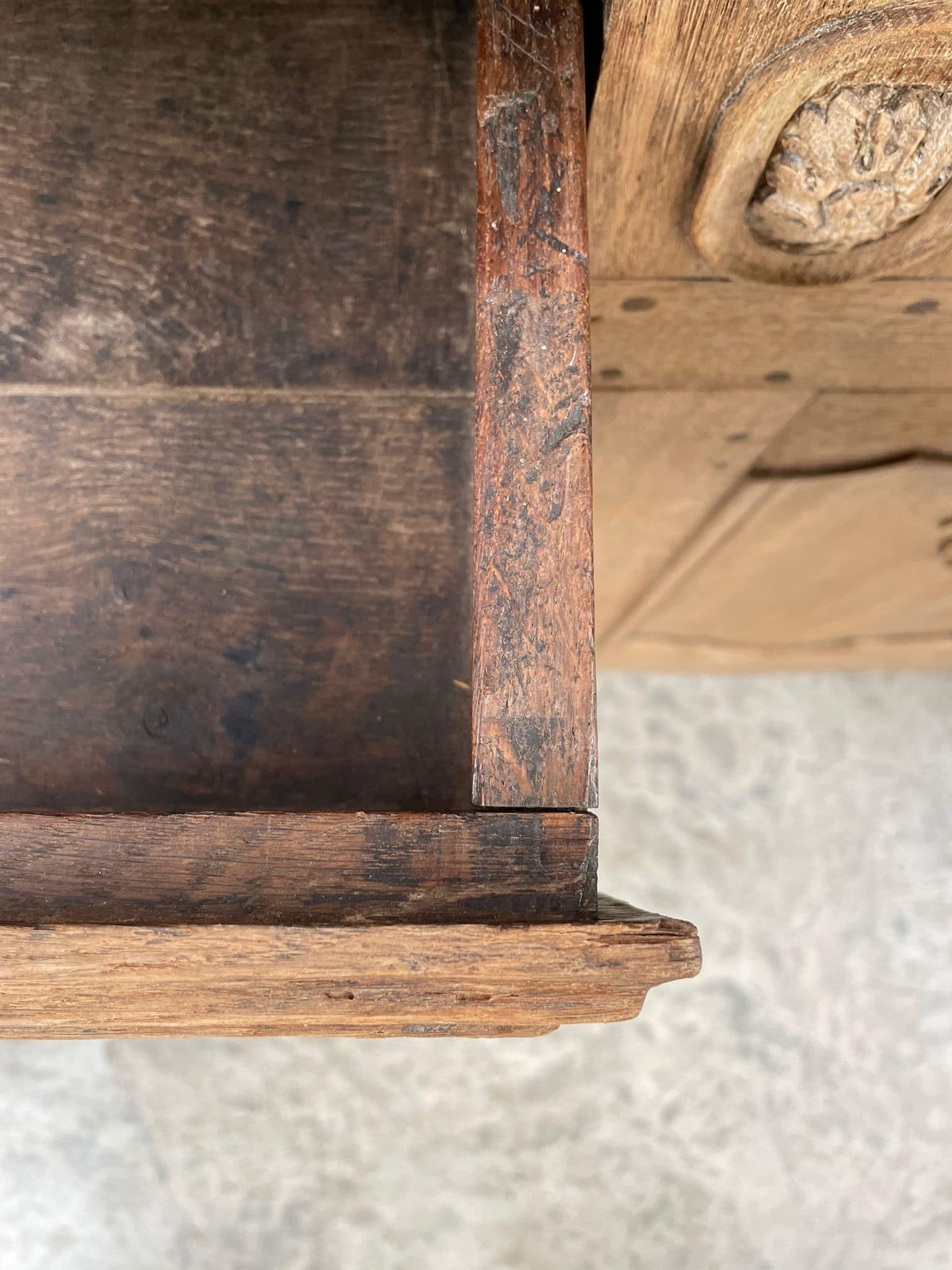 Massief eiken landelijke dressoir / buffetkast met houtsnijwerk