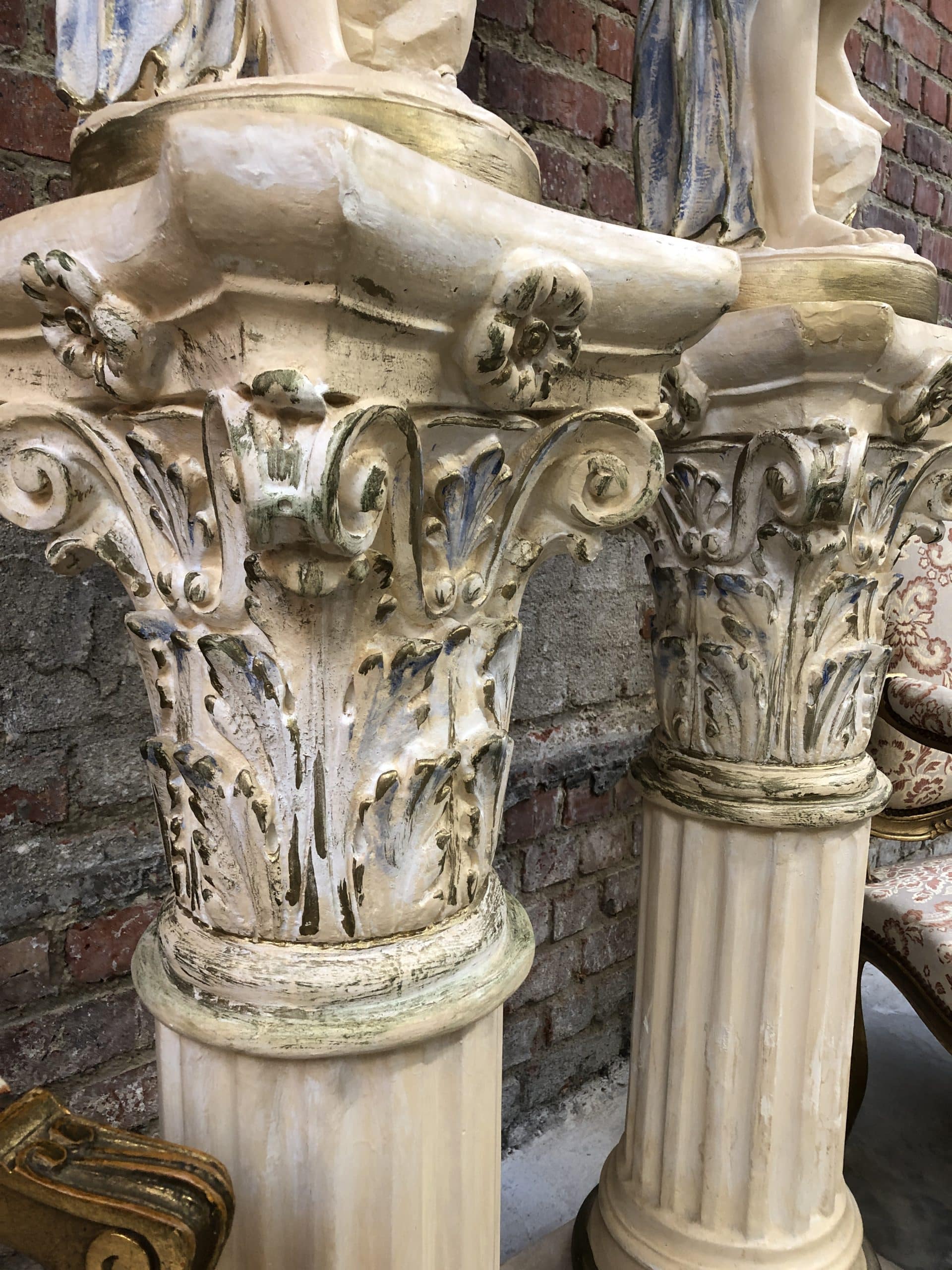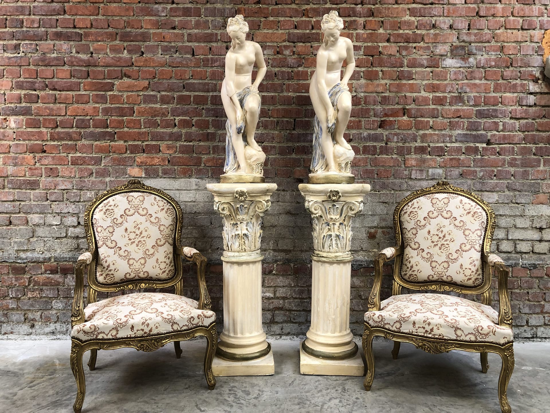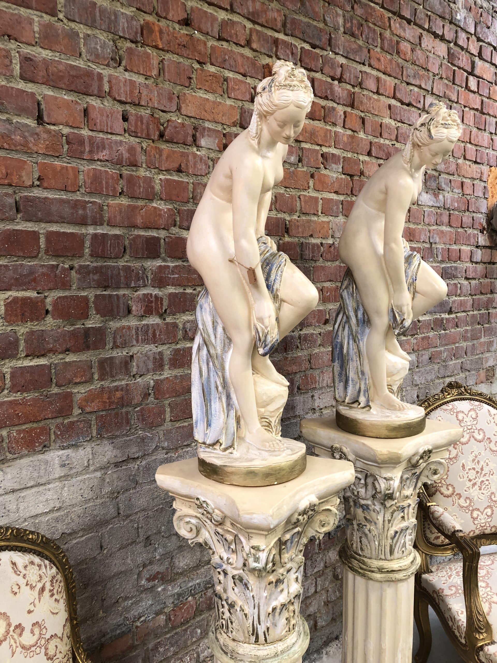 Prachtige set van twee beelden Helena van Troje op sokkel uit steen en gips.