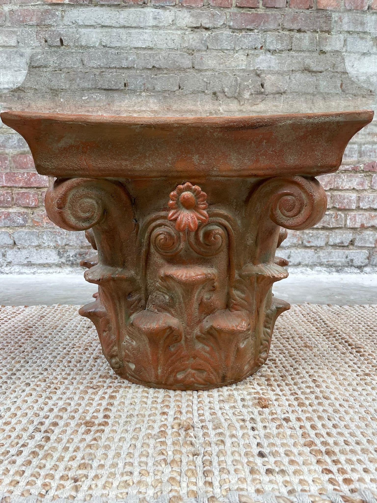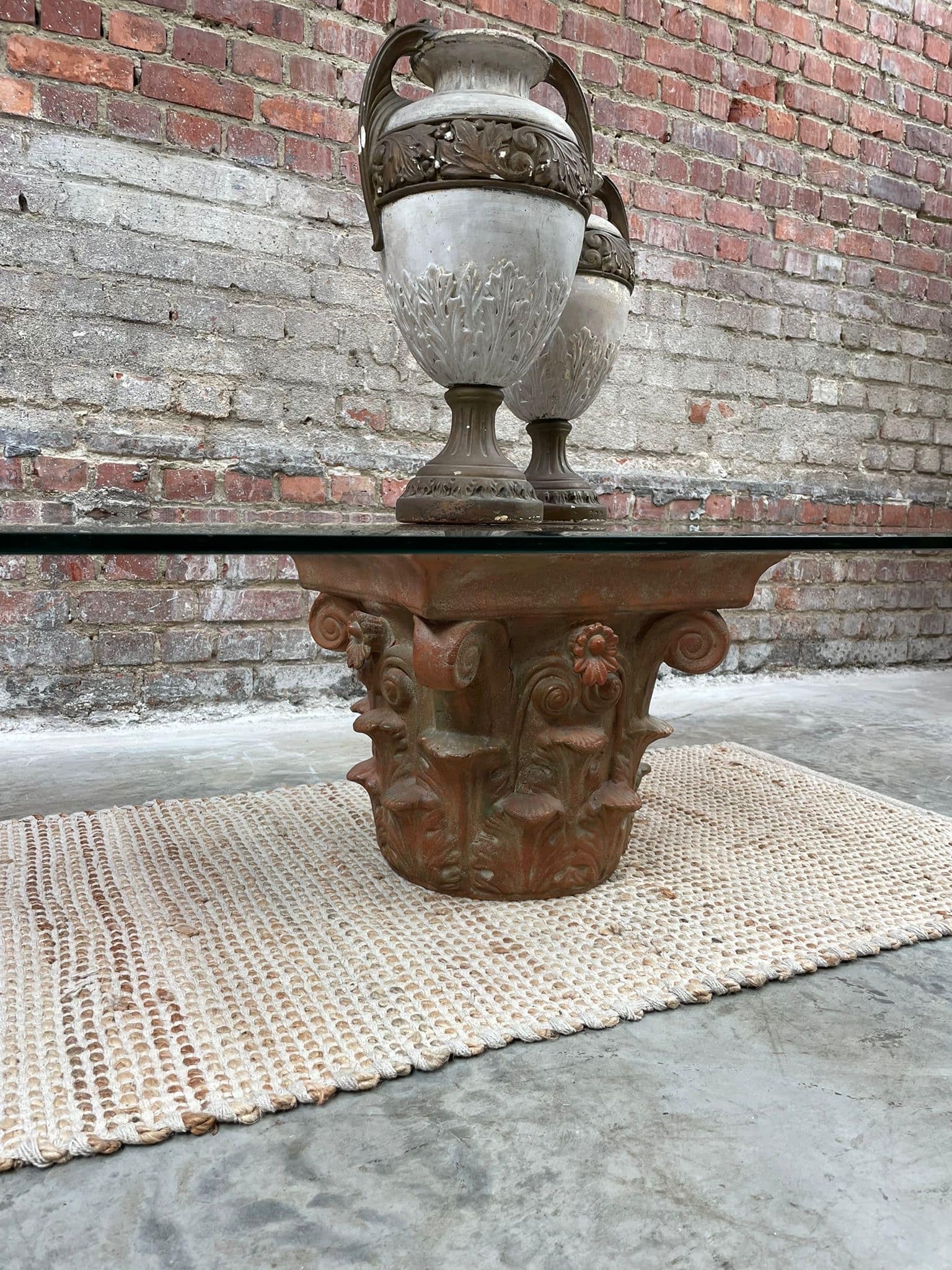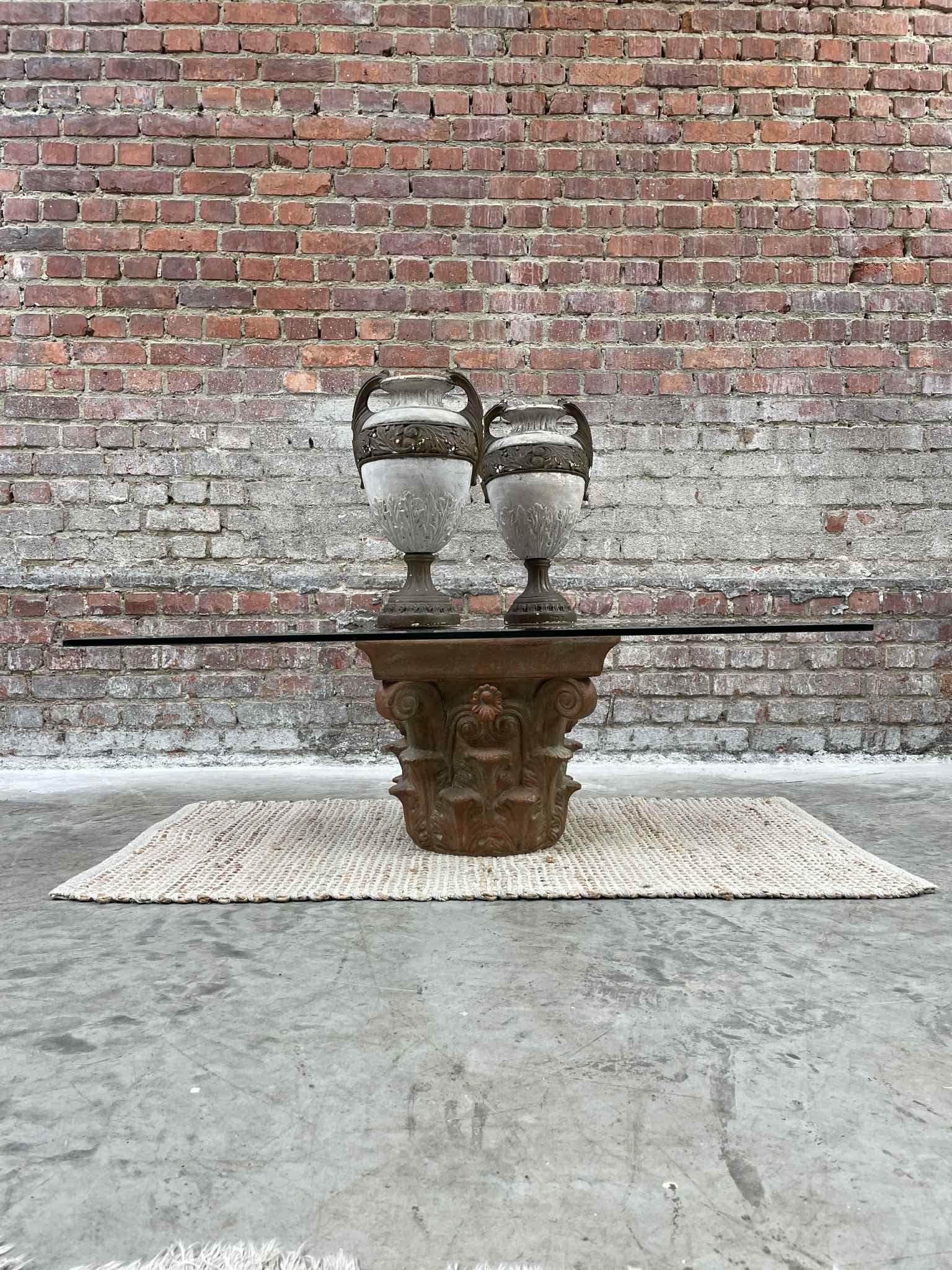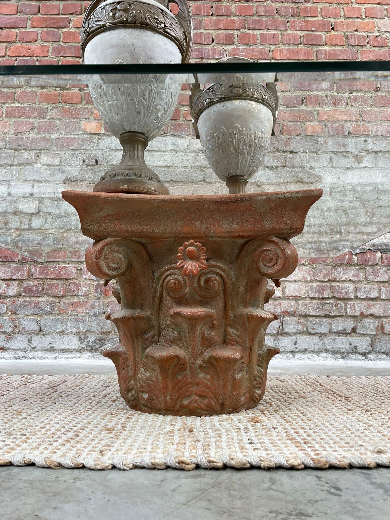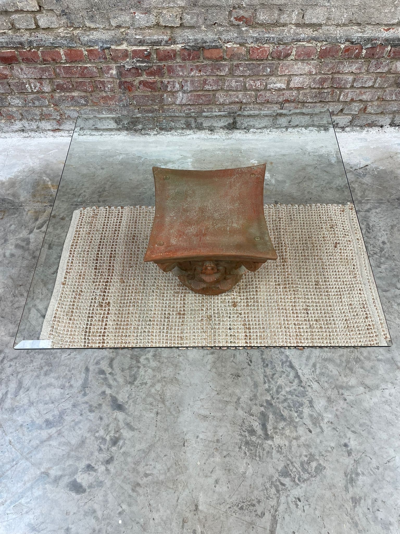 Vintage glazen salontafel met terracotta voet Paolo Marioni